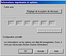 En fonction de la configuration de votre système, les informations affichées dans la boîte de dialogue Informations imprimante et options peuvent se mettre à jour automatiquement, ou nécessiter une entrée manuelle.