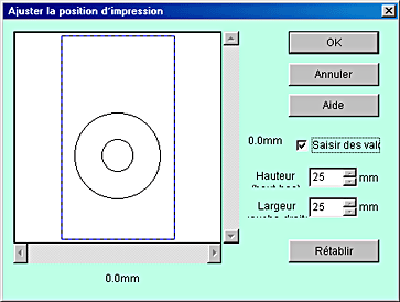 Sélectionnez Ajuster précisément la position d'impression dans le menu Fichier. La zone de dialogue Ajuster précisément la position d'impression s'ouvre.