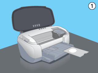 ![]() | Placez le CD-R sur le plateau, face de l'étiquette vers le haut. |