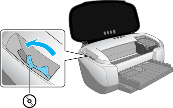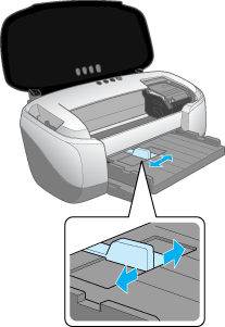 ![]() | Déplacez le guide-papier gauche de façon à dégager un passage supérieur à la largeur du plateau du CD-R. |