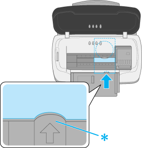| Insérez fermement le chargeur feuille à feuille frontal dans l'emplacement approprié de l'imprimante. |