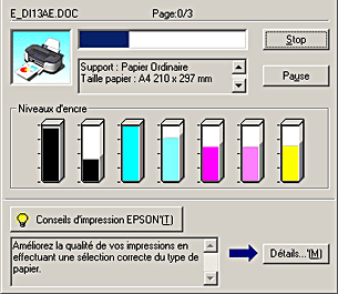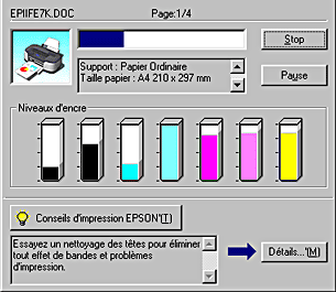 Il est possible d'annuler l'impression en utilisant la barre de progression ou EPSON Spool Manager. Reportez-vous à la section appropriée ci-après.