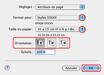 Sélectionnez l'imprimante utilisée pour le paramètre Format pour.