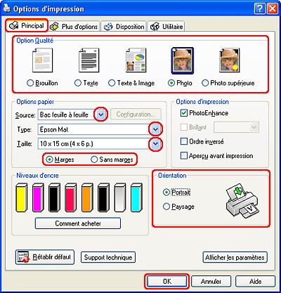 Cliquez sur OK pour fermer la fenêtre des paramètres de l'imprimante.