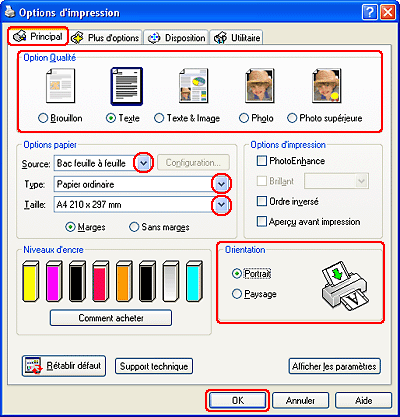 Cliquez sur OK pour fermer la fenêtre des paramètres de l'imprimante.