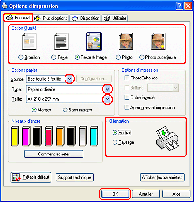 Cliquez sur OK pour fermer la fenêtre des paramètres de l'imprimante.