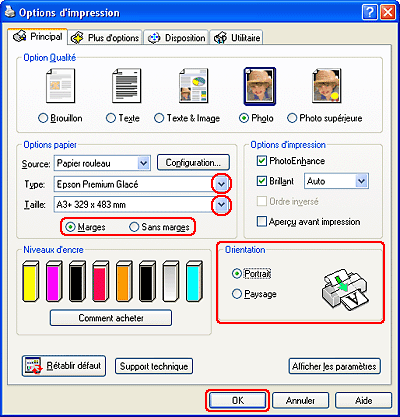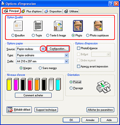Paramètres de l'imprimante pour WindowsProcédez comme suit pour définir les paramètres de l'imprimante.