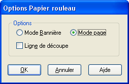 ![]() Sélectionnez Mode page pour imprimer des photos de taille standard. Sélectionnez Mode Bannière pour imprimer des bannières.