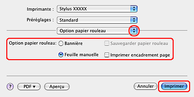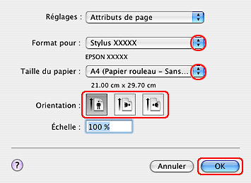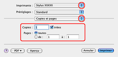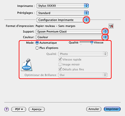 Paramètres de l'imprimante pour Mac OS XProcédez comme suit pour définir les paramètres de l'imprimante.