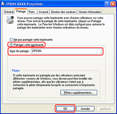 Sélectionnez Partager cette imprimante et saisissez ensuite un nom de partage.