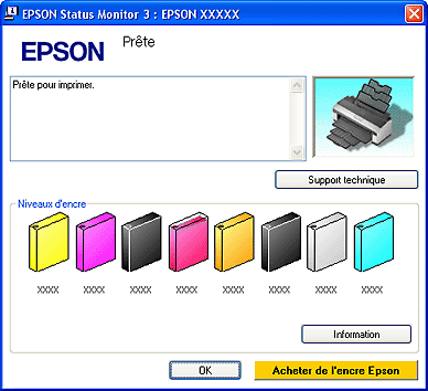 Epson ne peut garantir la qualité ou la fiabilité des encres non d'origine. Si des cartouches d'encre non d'origine sont installées, leur état peut ne pas s'afficher.