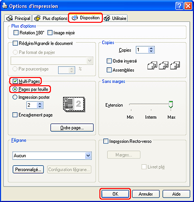 Impression Pages par feuille