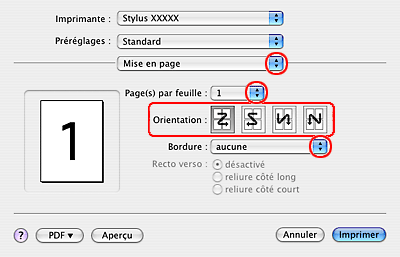 Cette fonction n’est pas disponible dans le cadre de l'impression sans marges.
