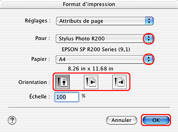 Sélectionnez Stylus Photo R200 pour le paramètre Imprimante.