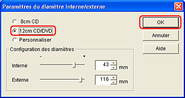 Sélectionnez 12 cm CD/DVD et cliquez sur OK.