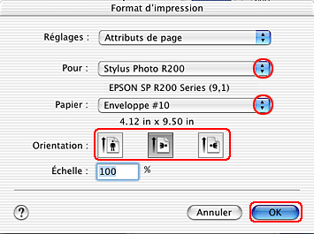 Sélectionnez la taille d'enveloppe appropriée dans la liste Papier.