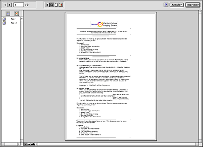 Lorsque vous voulez imprimer le document, double-cliquez sur le fichier pour ouvrir EPSON MonitorIV, vérifiez que vous avez sélectionné le bon fichier puis cliquez sur le bouton Reprise pour envoyer les données à l'imprimante.