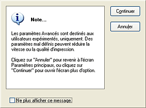 Pour afficher les paramètres avancés, cliquez sur Plus d'options dans l'onglet Principal. Si la fenêtre Note ci-dessous s'affiche, cliquez sur Continuer.