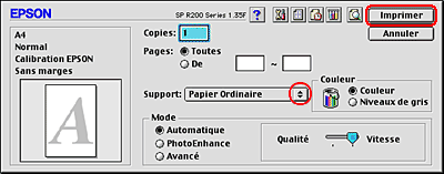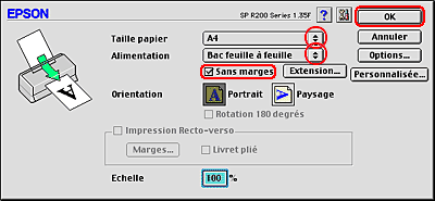 Sélectionnez Stylus Photo R200 (Bac feuille à feuille - Sans marges) pour le paramètre Pour.