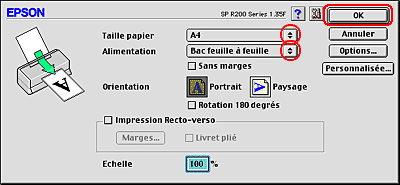 • Cette fonction n'est pas disponible si vous activez la case à cocher Sans marges dans la zone Options papier de l'onglet Principal (Windows) ou dans la zone de dialogue Format d'impression (Macintosh).
