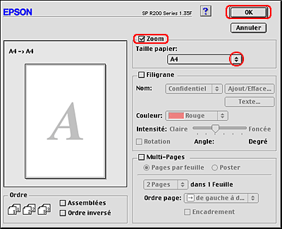 La fonction d'impression Zoom permet d'adapter un document créé selon un format de papier particulier, A4 par exemple, en vue de son impression sur un papier de taille différente.