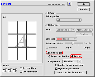 Dans la zone de dialogue Disposition, activez la case à cocher Multi-Pages puis sélectionnez Poster.
