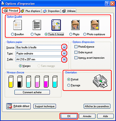 Cliquez sur OK pour fermer la fenêtre des paramètres de l'imprimante.