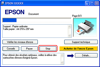 Cliquez sur le bouton Stop pour annuler l’impression.