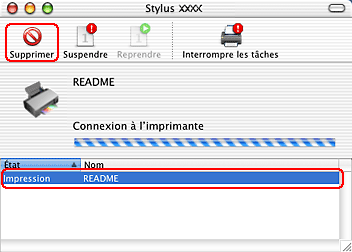 Cliquez sur le bouton Supprimer pour annuler le travail d'impression.
