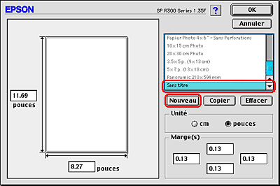Définition de tailles papier personnalisées sous Mac OS 8.6 à 9.x
