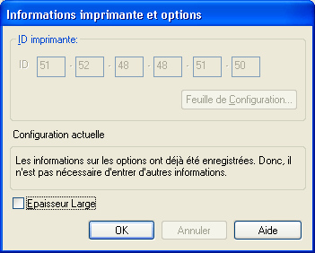 En fonction de la configuration de votre système, les informations affichées dans la boîte de dialogue Informations imprimante et options peuvent être mises à jour automatiquement ou nécessiter une entrée manuelle.
