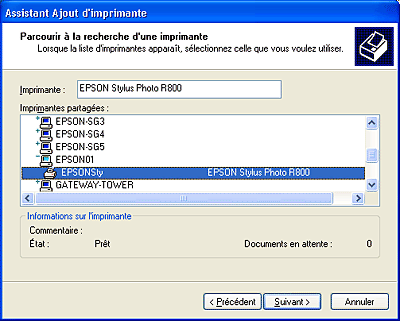 Cliquez sur Imprimante réseau, puis sur Suivant.
