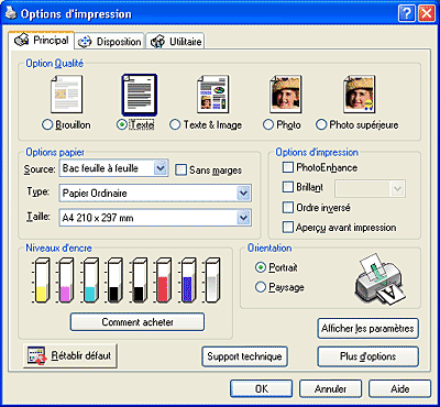 Bien que vous puissiez définir toute une gamme de formats de papier, la taille du papier que vous pouvez introduire dans l'imprimante est limitée par celle du bac feuille à feuille. Par conséquent, nous vous recommandons de réduire ou d'agrandir au besoin les documents pour qu'ils tiennent dans la gamme des formats acceptés par votre imprimante.