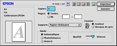 Paramètres du logiciel d'impression / Pour Mac OS 8.6 à 9.x