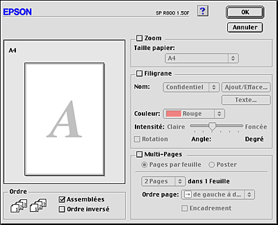 Permet d'imprimer un texte ou une image comme filigrane sur votre tirage. |