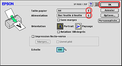 Cette fonction n'est pas disponible si vous activez la case à cocher Sans marges dans la zone Options papier de l'onglet Principal (Windows) ou dans la zone de dialogue Format d'impression (Macintosh).