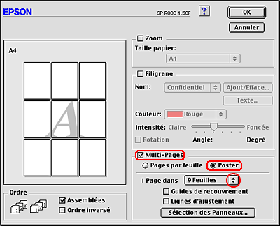 Dans la zone de dialogue Disposition, activez la case à cocher Multi-Pages, puis sélectionnez Poster.