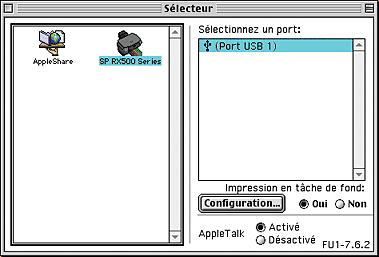 Choisissez Sélecteur dans le menu Pomme et cliquez sur l'icône du combiné multifonction, puis sélectionnez le port auquel il est connecté.