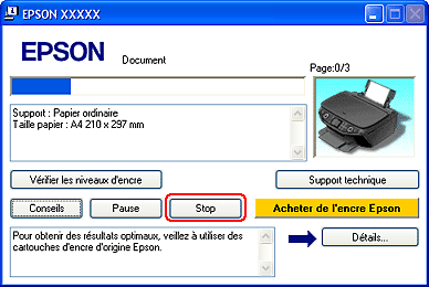 Cliquez sur le bouton Stop pour annuler l’impression.