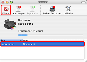Cliquez sur le bouton Effacer pour annuler le travail d'impression.