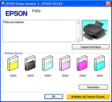 Epson ne peut garantir la qualité ou la fiabilité des encres non d'origine. Si des encres non d'origine sont installées, il est possible que leur état ne s'affiche pas.