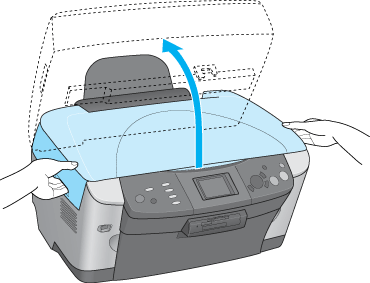 Ne soulevez pas le module scanner lorsque le capot est encore ouvert.