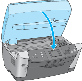 Vérifiez que le capot est fermé puis soulevez le module scanner.