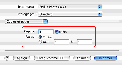![]() | Accès au logiciel d'impression sous Mac OS X |