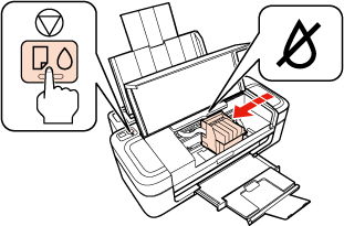 Remplacement d'une cartouche d'encre videVous pouvez remplacer les cartouches d'encre à l'aide des touches de l'imprimante ou de votre ordinateur. Pour plus de détails, veuillez vous reporter à la section adaptée ci-dessous.