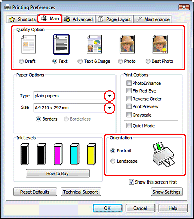 Kliknite na karticu Main, zatim odaberite jednu od ponuđenih mogućnosti postavke Quality Option: