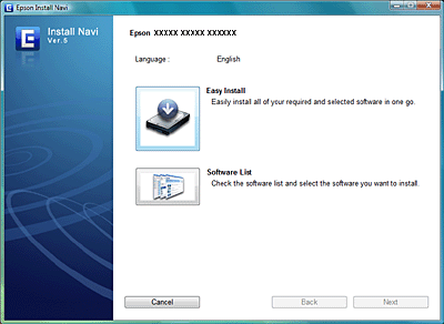 Easy Install će instalirati sav osnovni softver za upravljanje pisačem i skenerom. Ako želite instalirati softver pojedinačno, odaberite Software List (Popis softvera).