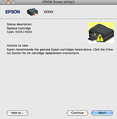 Kada je tinta pri kraju ili potrošena, pojavljuje se gumb How to. Kliknite na How to i EPSON Status Monitor 3 će vas korak po korak voditi kroz postupak zamjene spremnika.