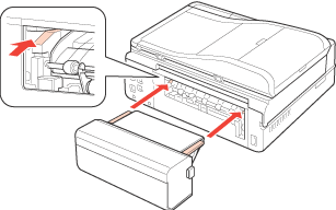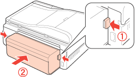 Držite gumbe sa strane i vodoravno umetnite Auto Duplexer na predviđeno mjesto.