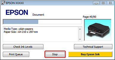 Kliknite na gumb Stop kako biste otkazali ispis.
